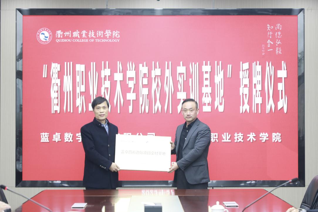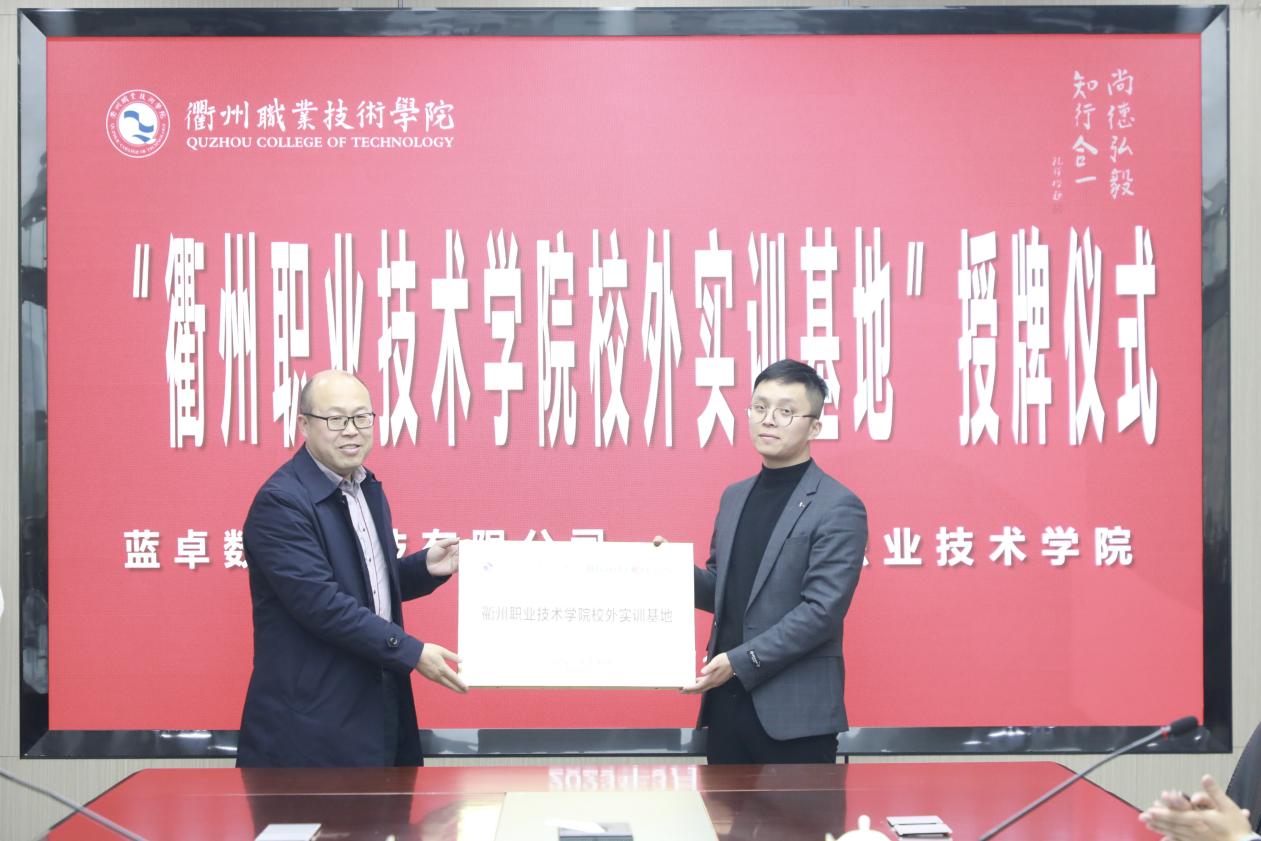 王建处长为蓝卓数字科技有限公司“beat365唯一官网_365足球平台入口_365黑道老大免费观看第一季在线职业技术学院校外实训基地”授牌。
