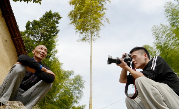 学生为衢江区太真乡竹梗底村留守老人拍照