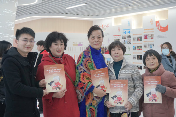 支部书记何敬老师给老年人赠送“智能技术应用”教材读本