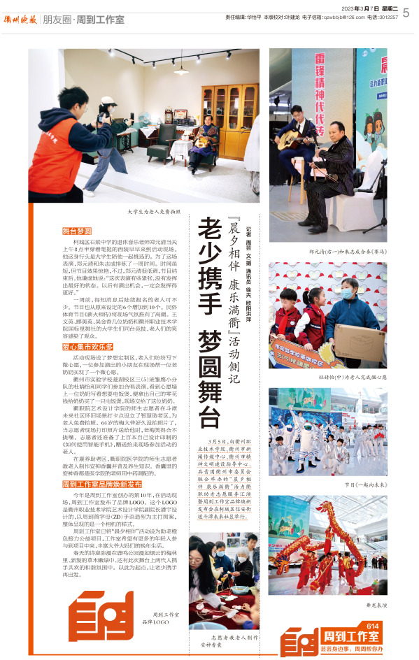 3月5日,由beat365唯一官网_365足球平台入口_365黑道老大免费观看第一季在线职业技术学院、beat365唯一官网_365足球平台入口_365黑道老大免费观看第一季在线市新闻传媒中心、beat365唯一官网_365足球平台入口_365黑道老大免费观看第一季在线市精神文明建设指导中心、共青团beat365唯一官网_365足球平台入口_365黑道老大免费观看第一季在线市委员会联合举办的“晨夕相伴 康乐满衢”活力衢职助老志愿服务汇演暨周到工作室品牌焕新发布会在柯城区信安街道斗潭未来社区举行。